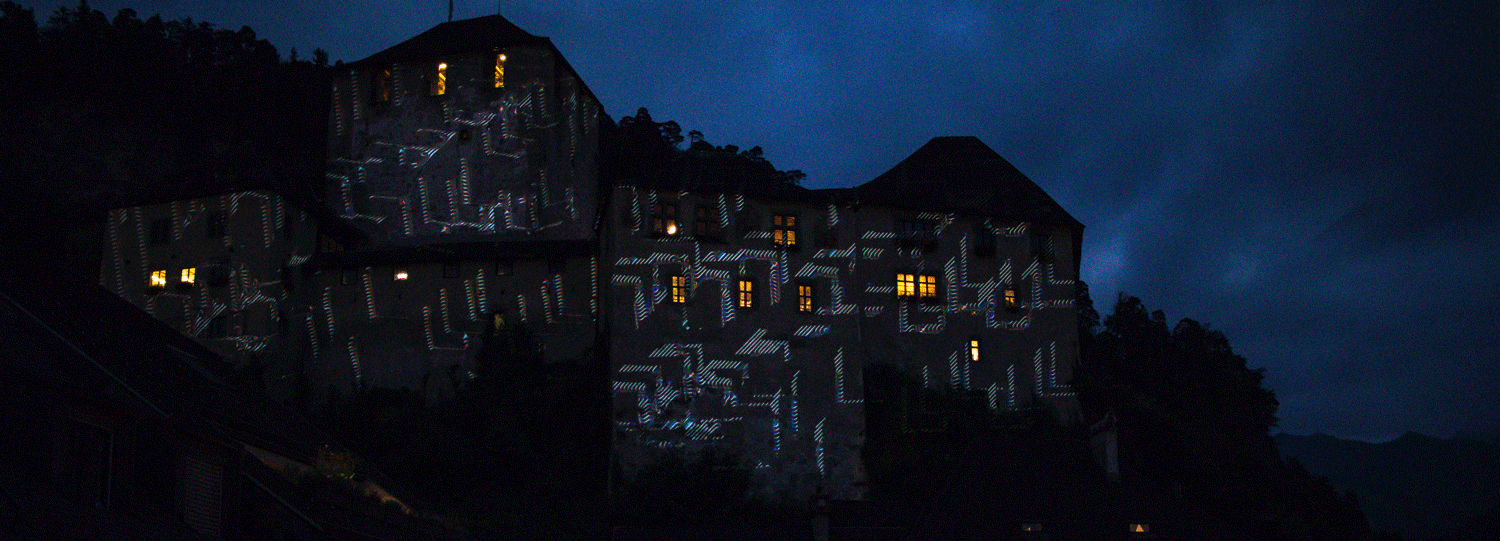 Large scale projection onto Schattenburg and Dogana in Feldkirch/Vorarlberg during Lichtstadt Feldkirch 2021.