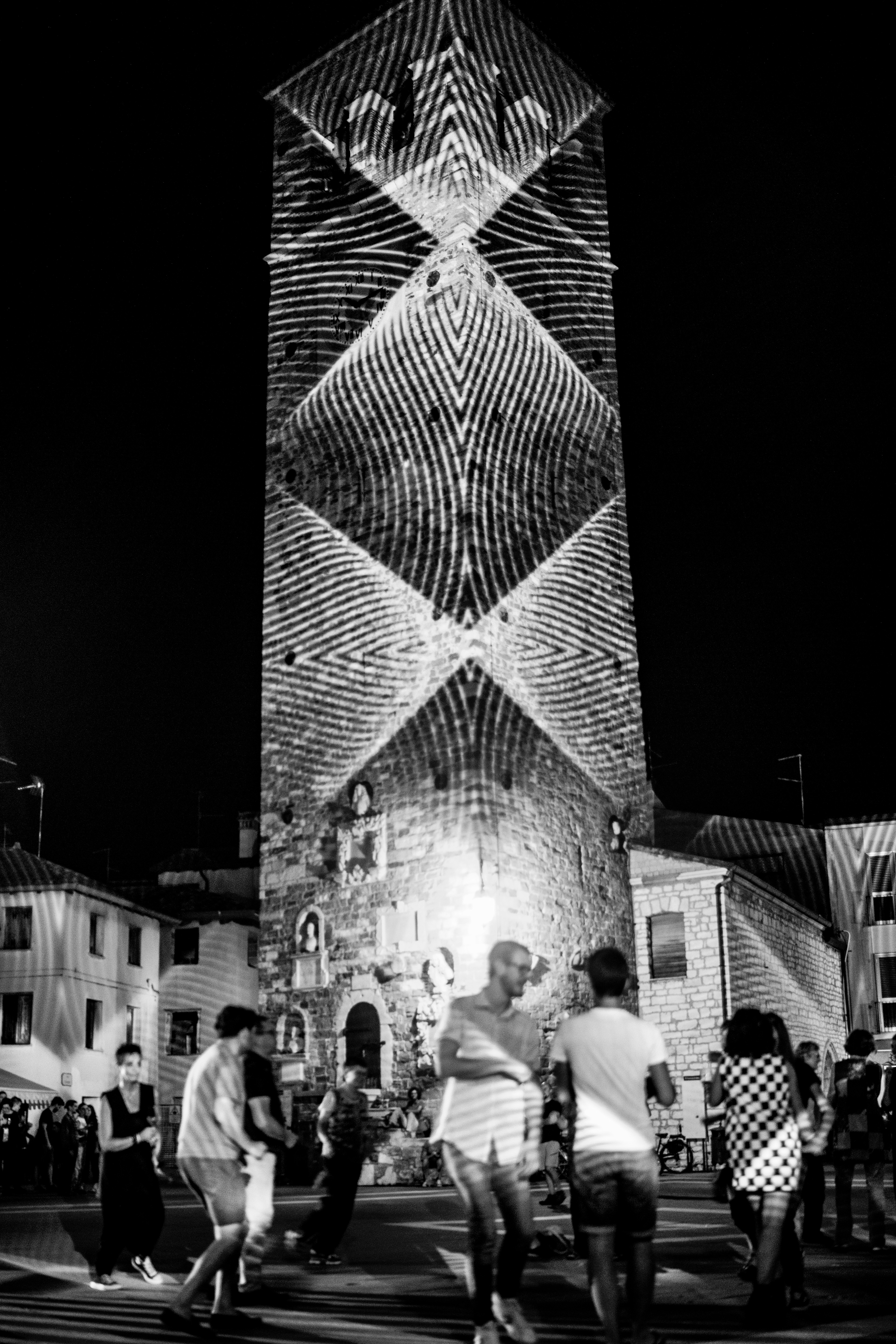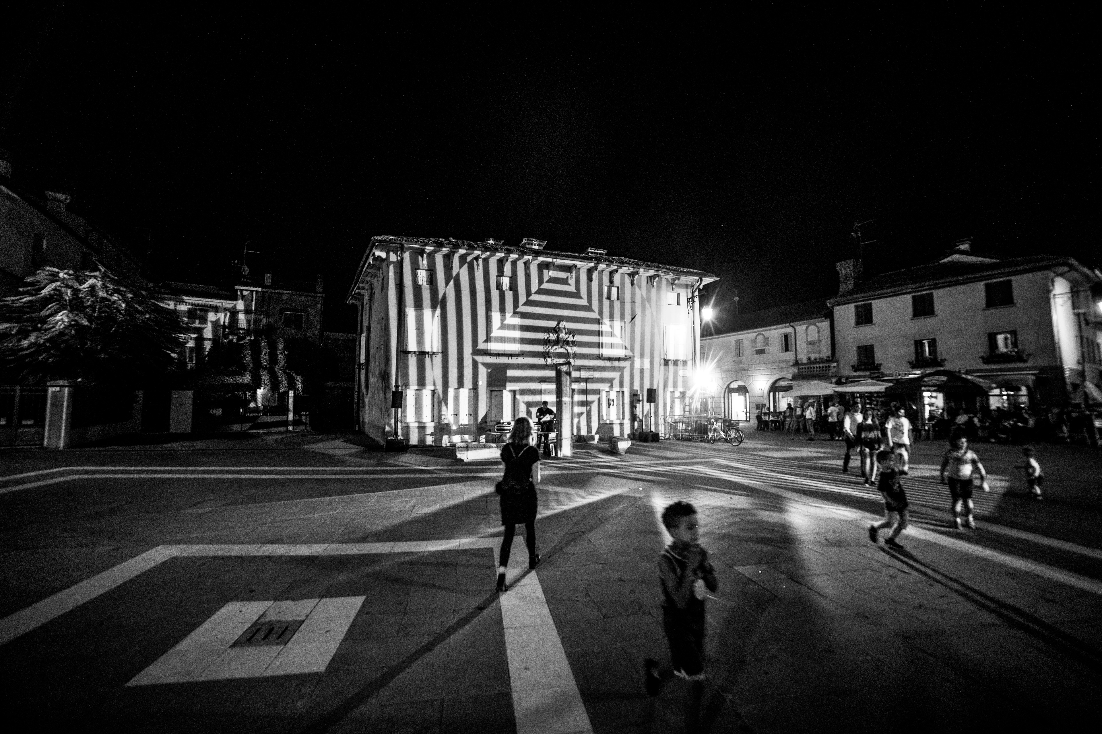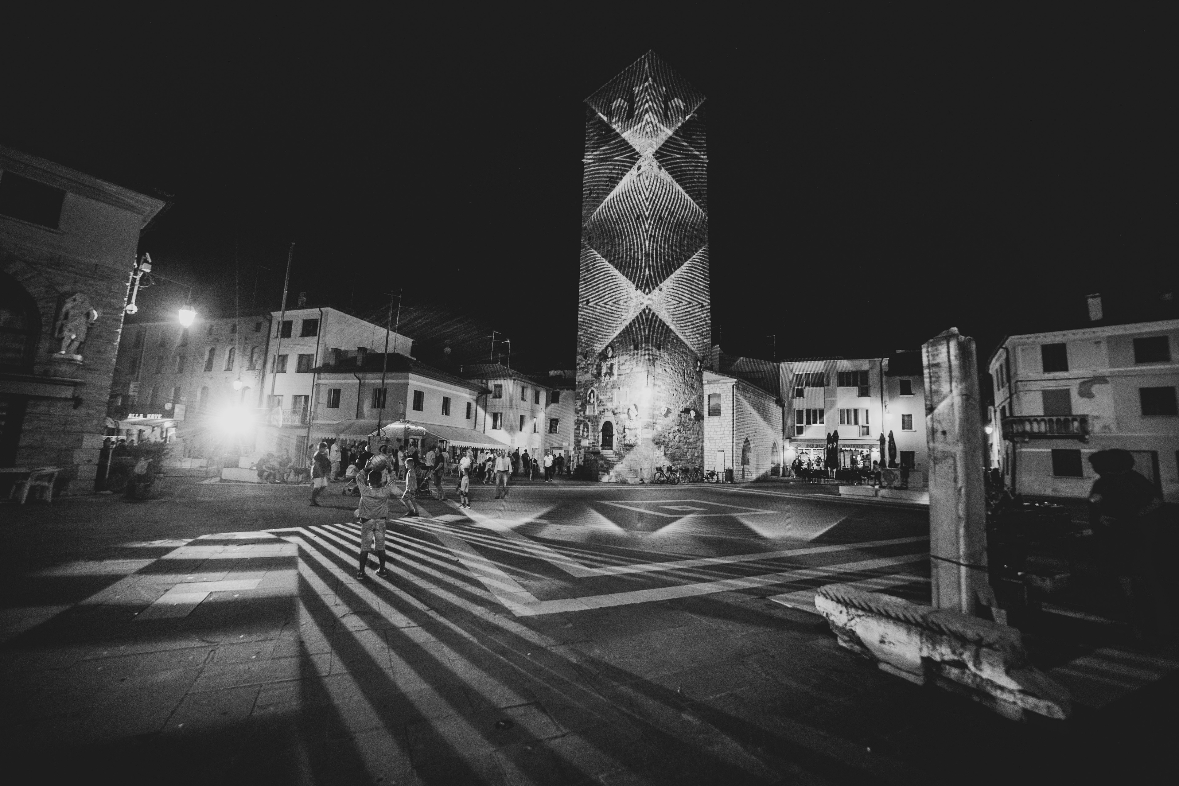Lighting up the main square of the beautiful small city Marano Lagunare/IT with analog large scale projectors.