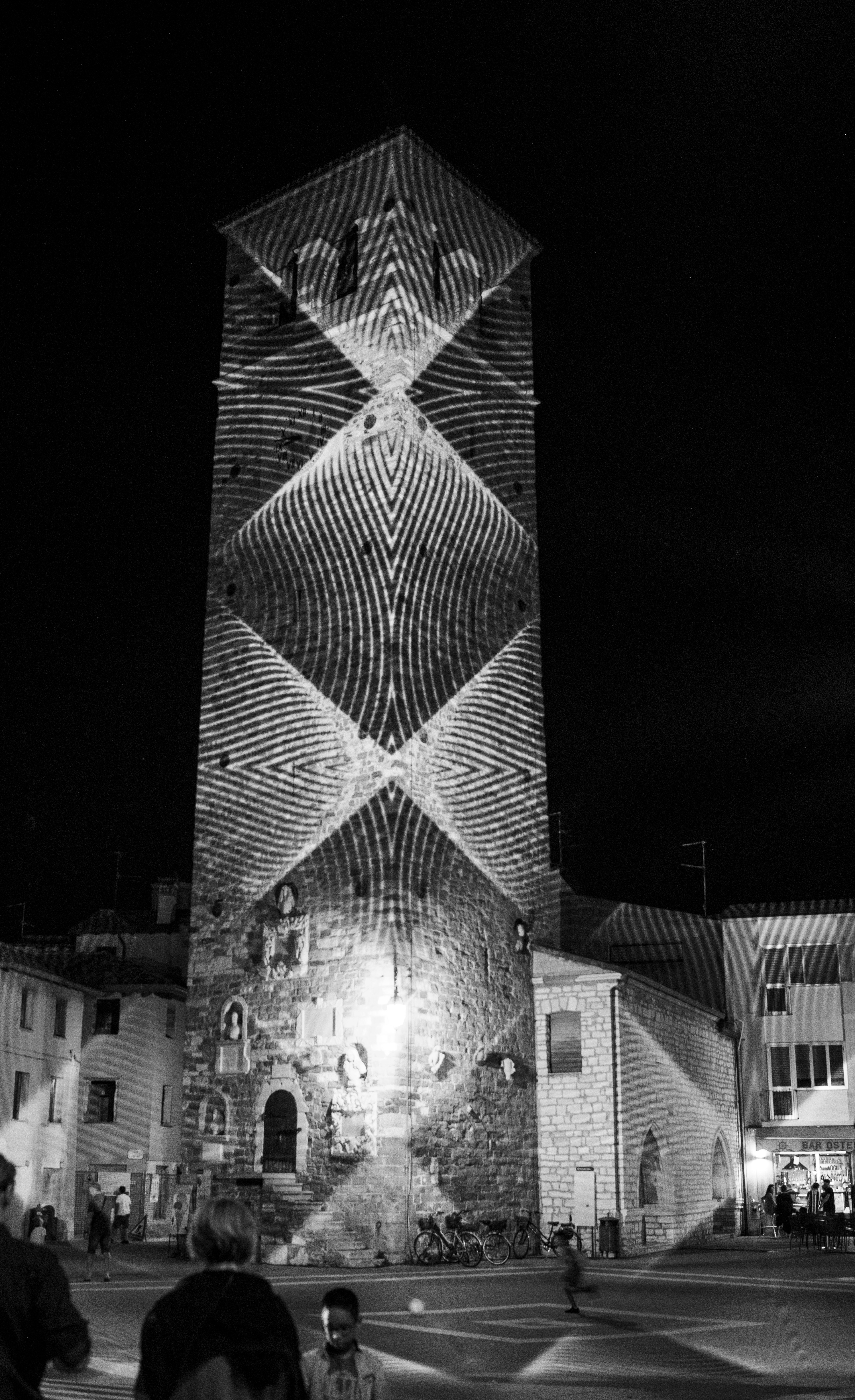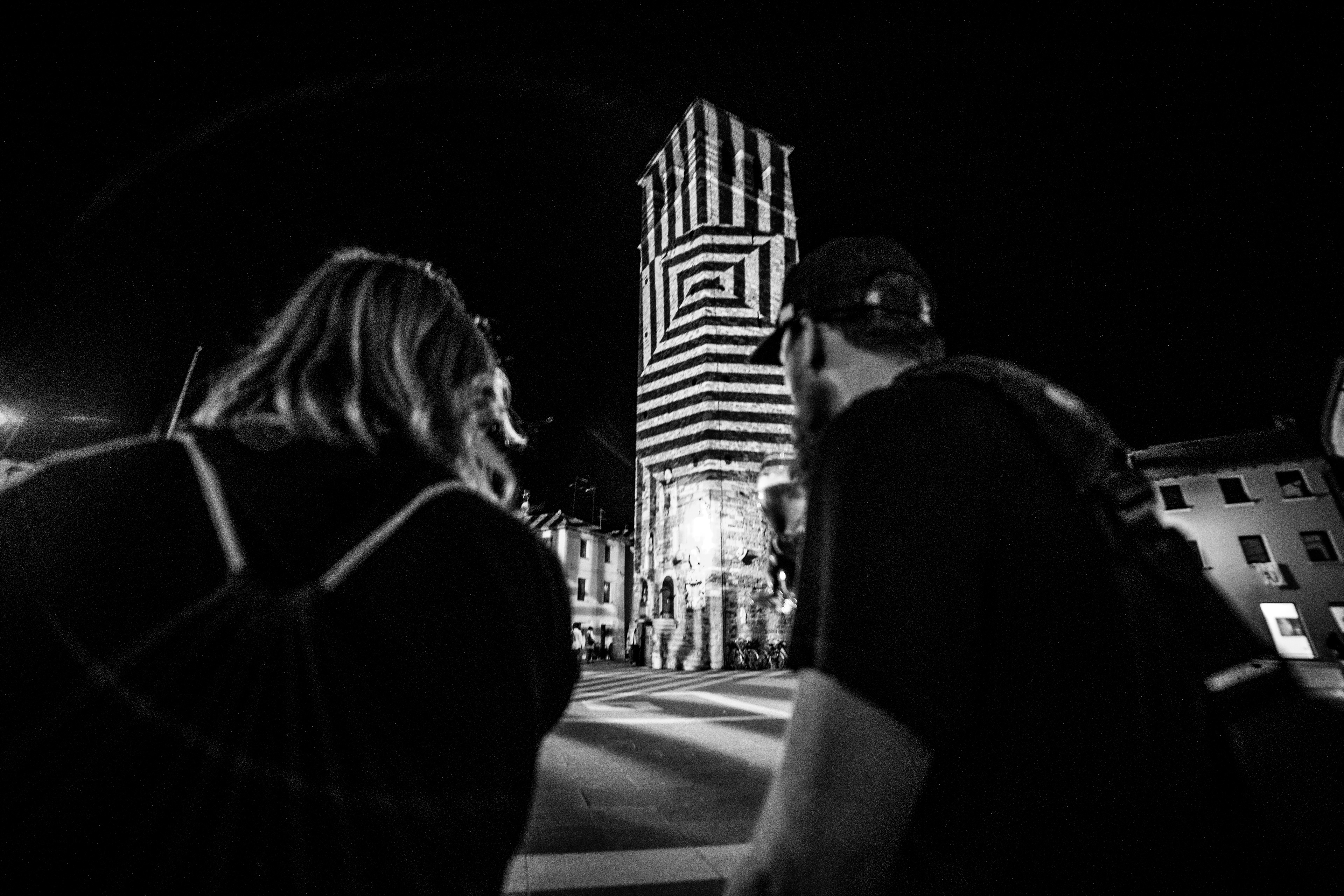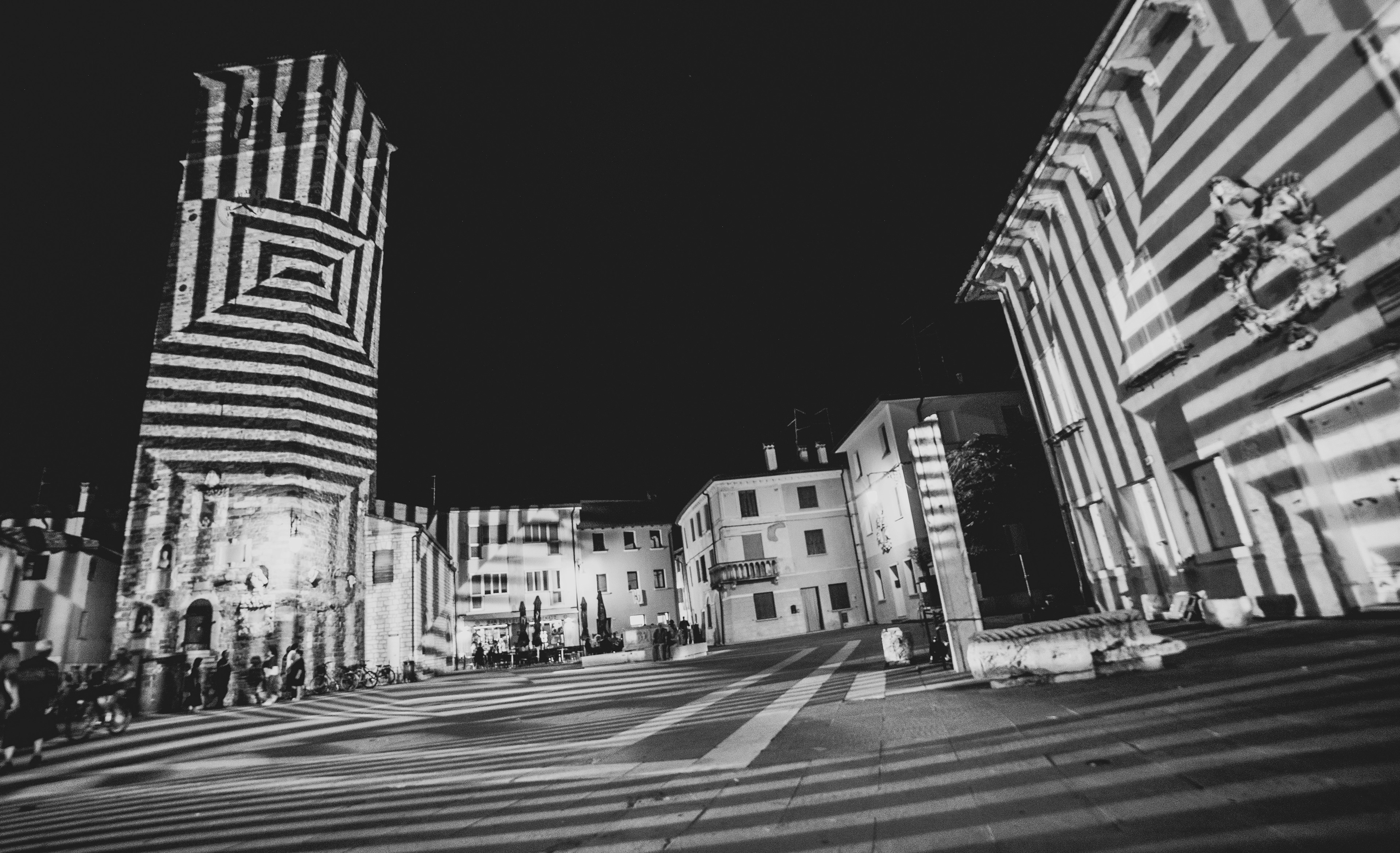 Lighting up the main square of the beautiful small city Marano Lagunare/IT with analog large scale projectors.